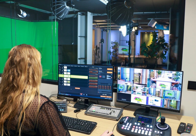 In onze opnamestudio’s maken we gebruik van hoogwaardige apparatuur (microfoon, koptelefoon, studio, decor, camera, licht, green screen, etc.) zodat jouw opnames van de allerhoogste kwaliteit zijn. Bovendien zorgen onze experts voor de beste cameratechnieken en moderne licht- en regiefaciliteiten om jouw producties naar een hoger niveau te tillen. Producties zijn te bekijken via live streaming en on demand.